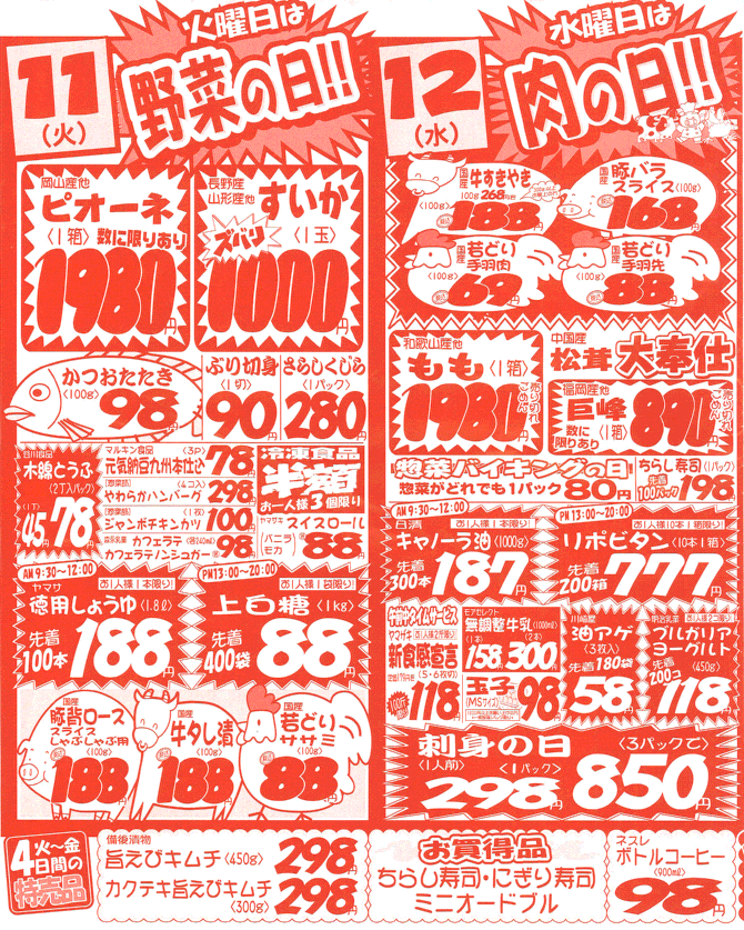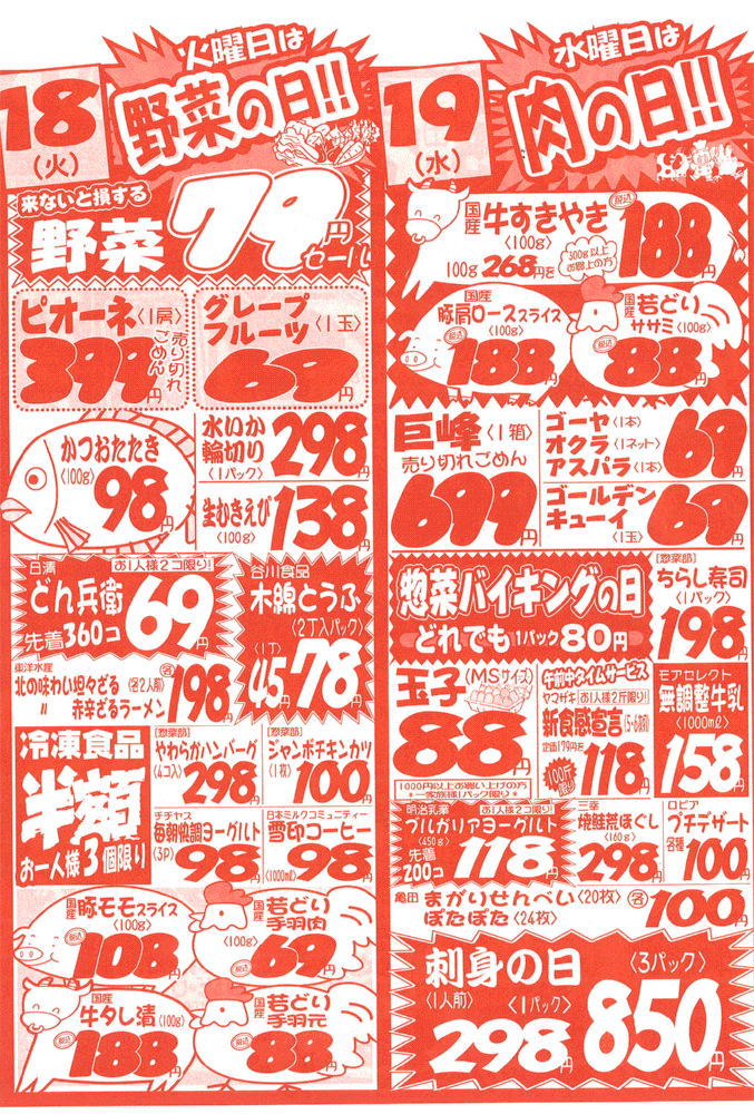 水曜日はぶっちゃけ偏りすぎてるくらいなんでも安い日です。